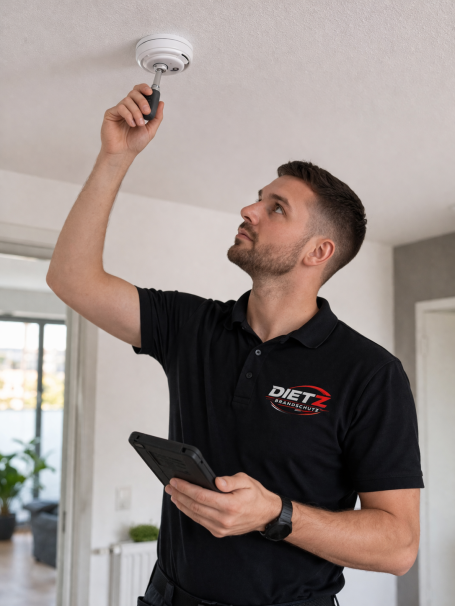Brandschutz Dietz unterstützt Privatkunden, Hausverwaltungen, Unternehmen und Betreiber von Wohn- und Gewerbeobjekten bei der professionellen Betreuung von Warnmeldern. Wir übernehmen die Montage neuer Geräte, die Wartung und Funktionsprüfung bestehender Melder sowie den Austausch defekter, beschädigter oder abgelaufener Geräte.